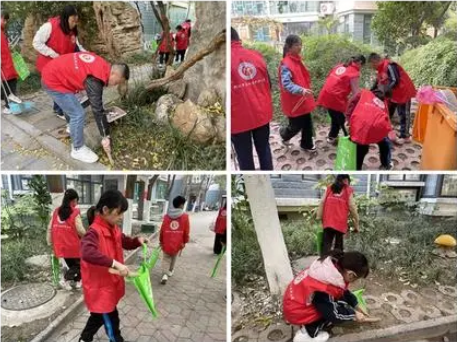 有的打掃路面,有的撿拾綠化帶中的廢物,還有的擔任廢物分類投進。在打掃過程中,黨員教師們不僅認真完成自己的任務,還耐心地向少先隊員們傳授廢物分類常識。