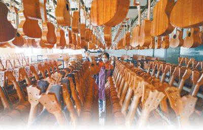 全世界每生产7把吉他,就有1把出自这里——正安是全球著名的吉他生产基地。早在2012年,了解到在该县20万外出务工的人员中,有将近6万人集中在吉他制造领域,正安便开始“筑巢引凤”,在2013年建起了国际吉他产业园,号召乡友返乡创业,并出台一系列优惠政策扶持吉他企业发展。